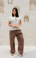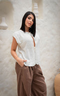 Las tiras frontales añaden un toque moderno y sutilmente atrevido, ideal para crear looks casuales o más chic según la ocasión. Perfecta para combinar con jeans, faldas o pantalones a la cintura.