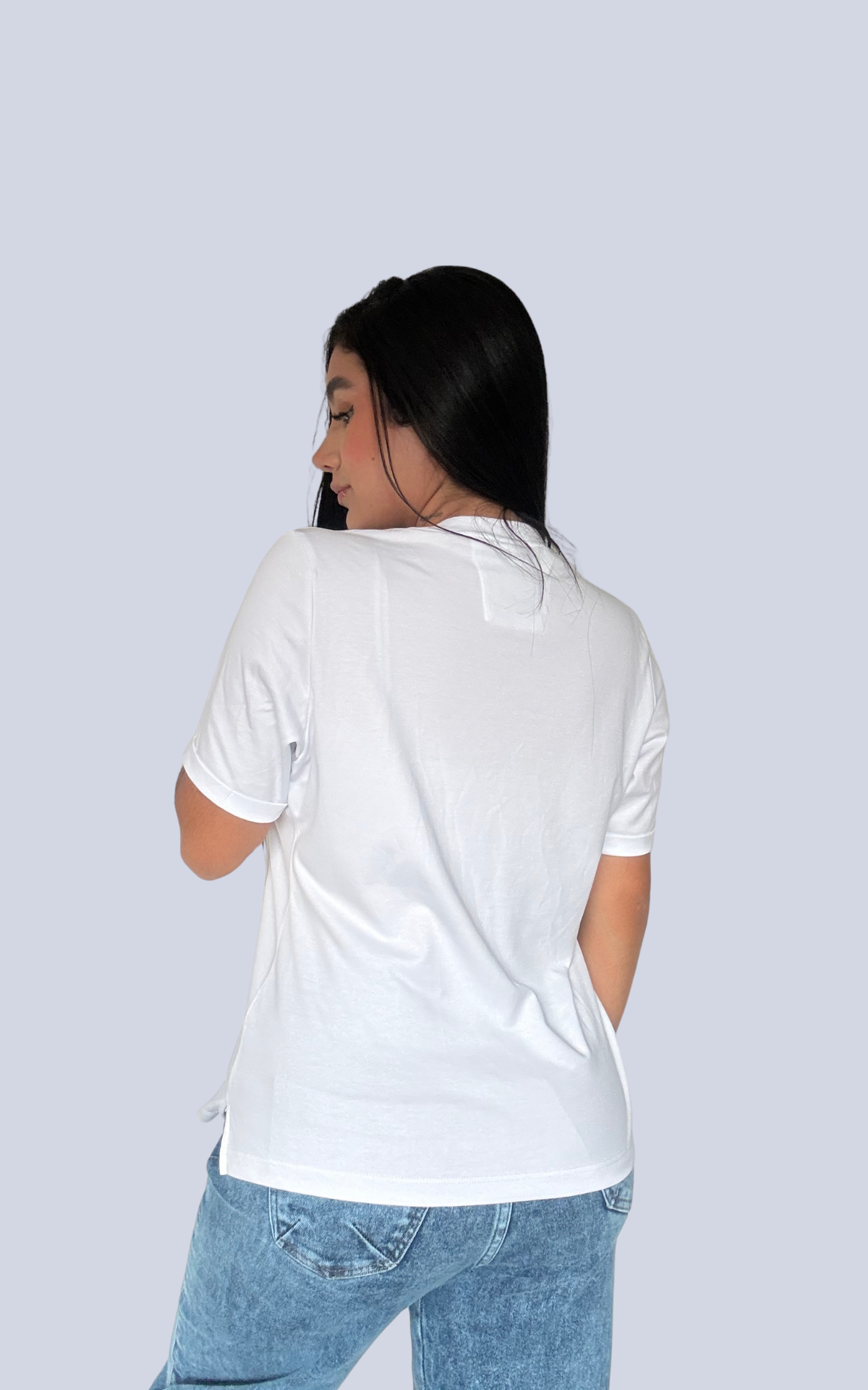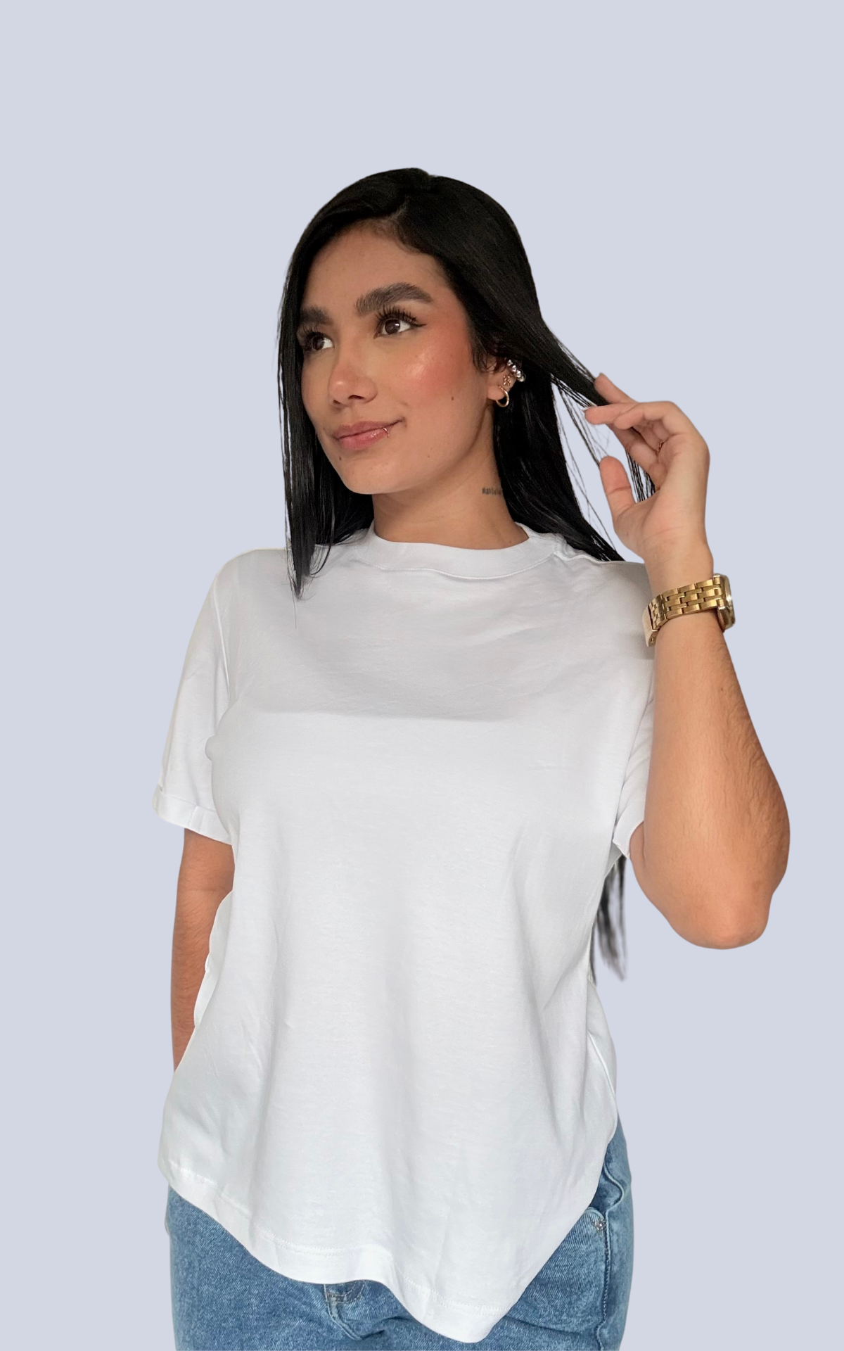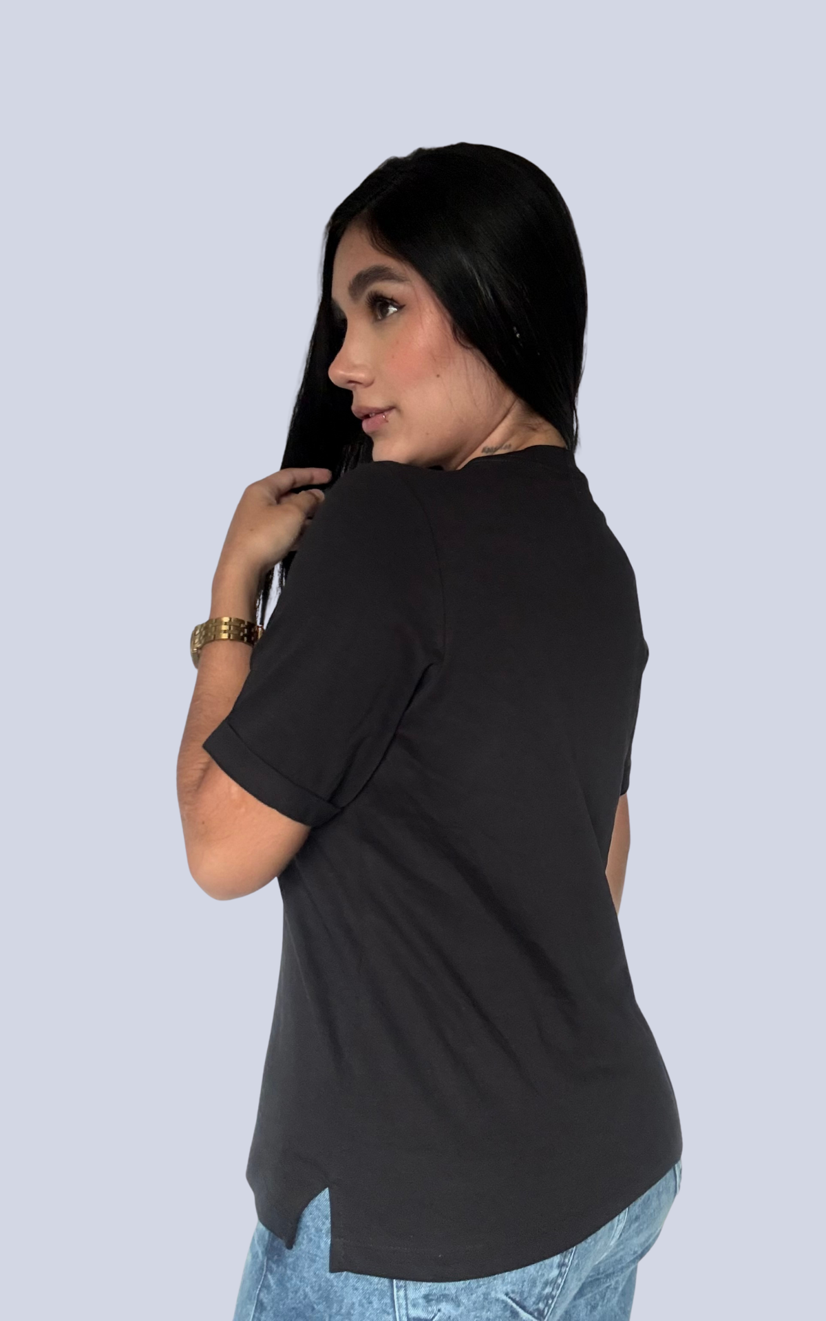 Disponible en tres colores, esta camiseta es la prenda perfecta para elevar tu look diario con un toque de elegancia y versatilidad.