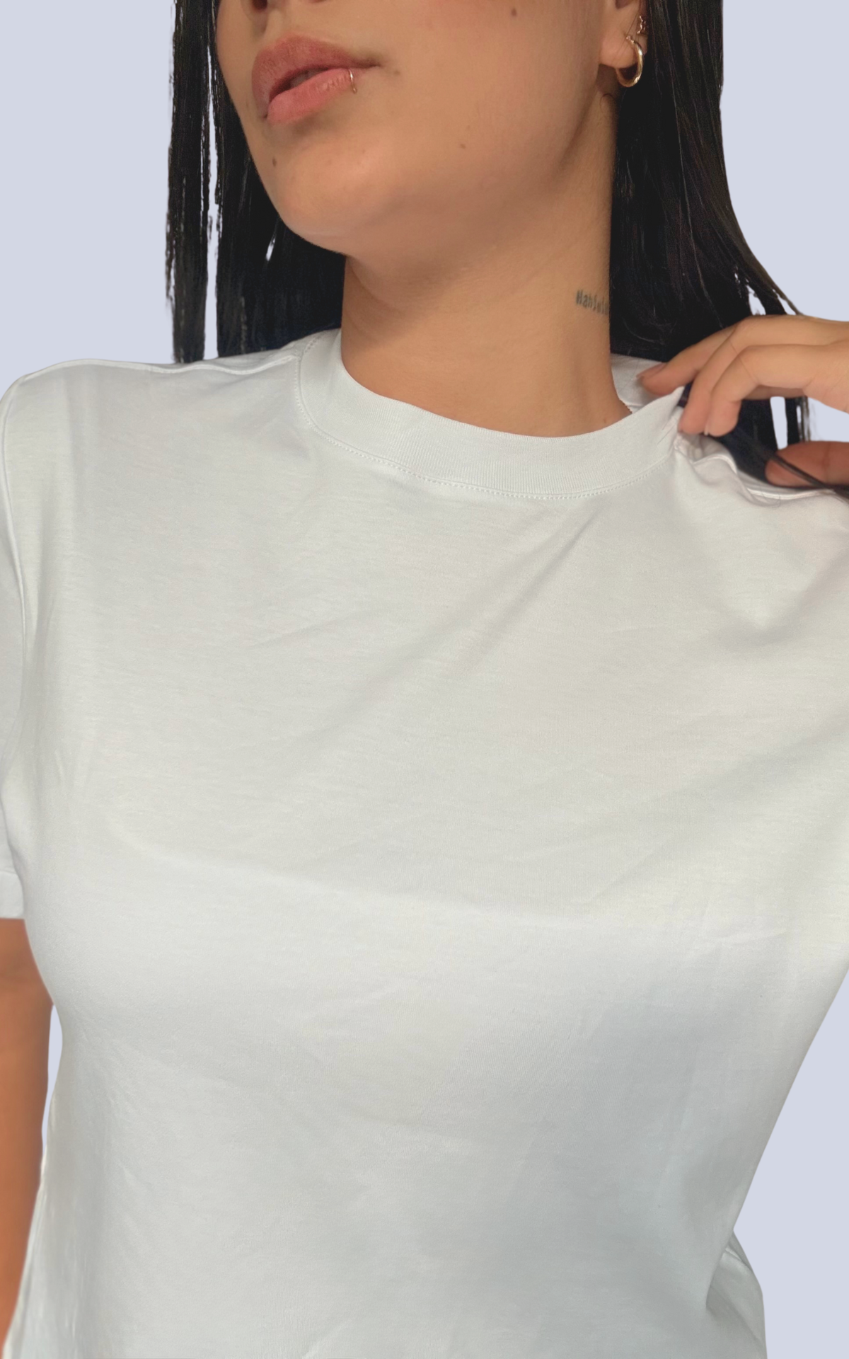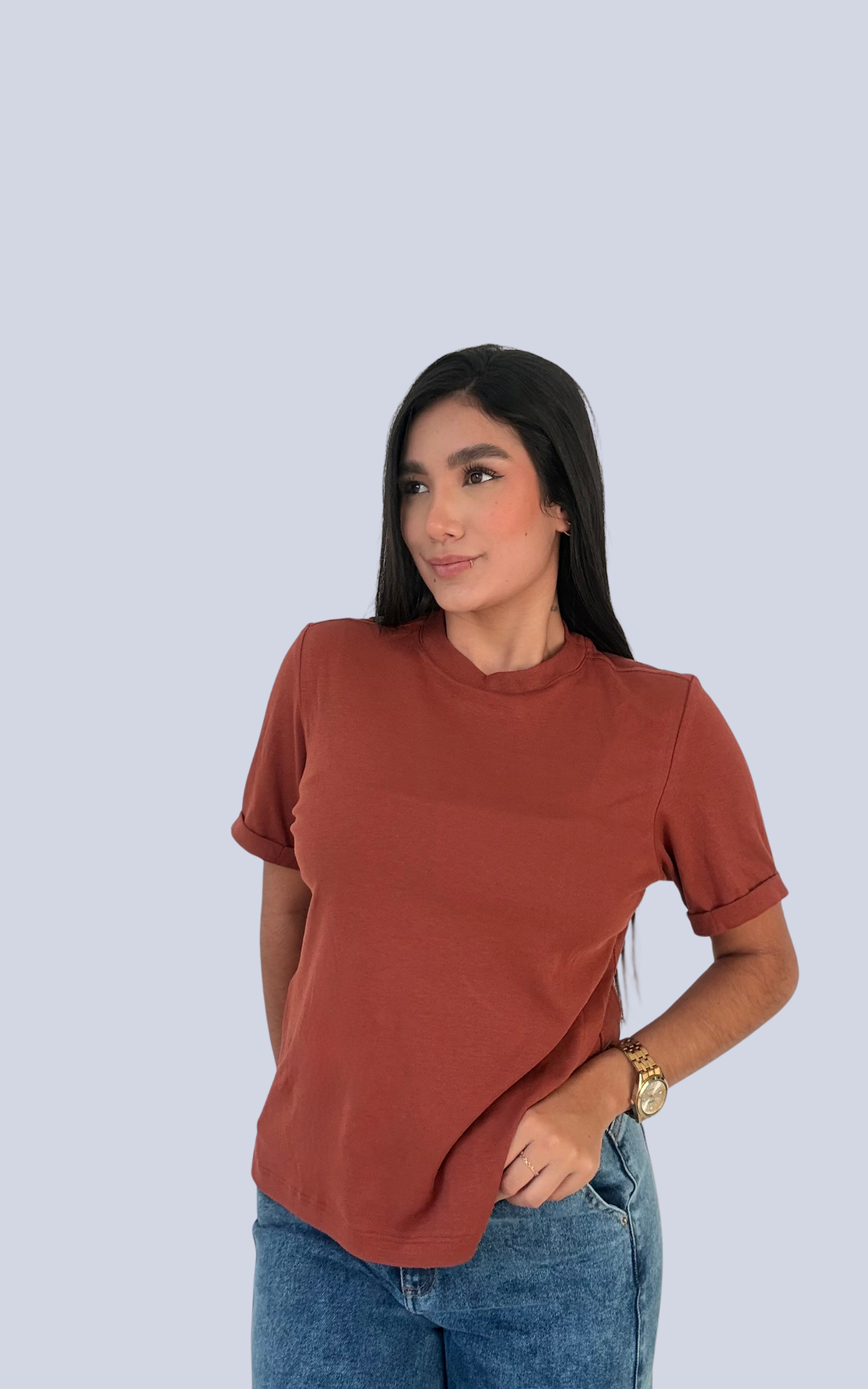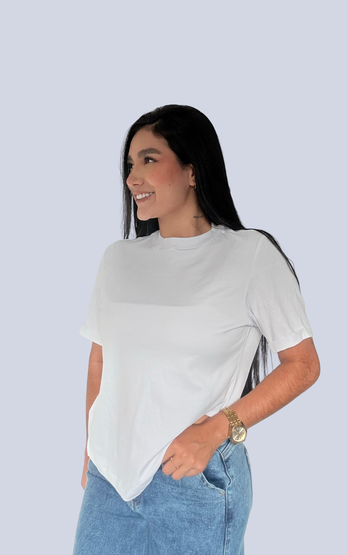 Disponible en tres colores, esta camiseta es la prenda perfecta para elevar tu look diario con un toque de elegancia y versatilidad.