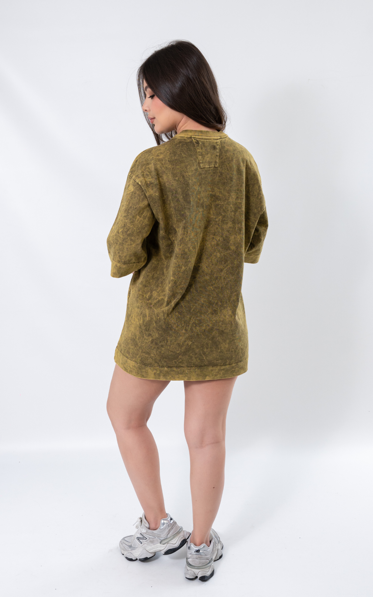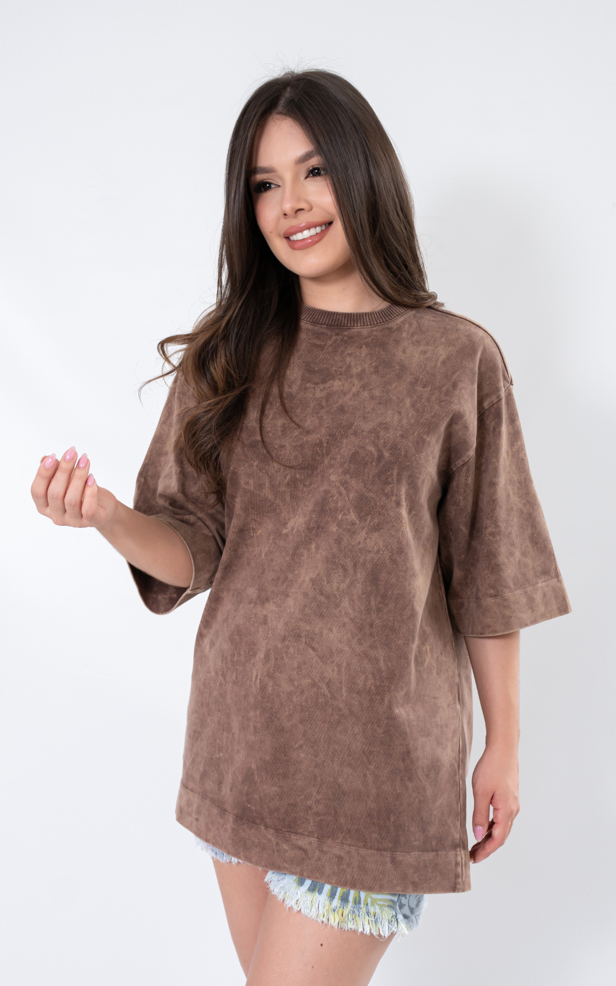 Nuestra T-shirt Oversize Washed Effect es la prenda que redefine la comodidad con estilo. Diseñada con un fit amplio y relajado, está confeccionada en algodón suave de acabado desgastado tipo TIE DIE, que aporta un aire urbano y moderno.
