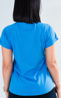 Nuestra camiseta estampada en tono azul está confeccionada en una tela de algodón suave al tacto, con un fit relajado que se adapta a tu día a día. Su diseño estampado le da ese toque único que eleva cualquier outfit, manteniendo la comodidad como protagonista.