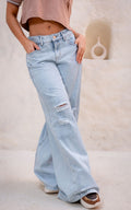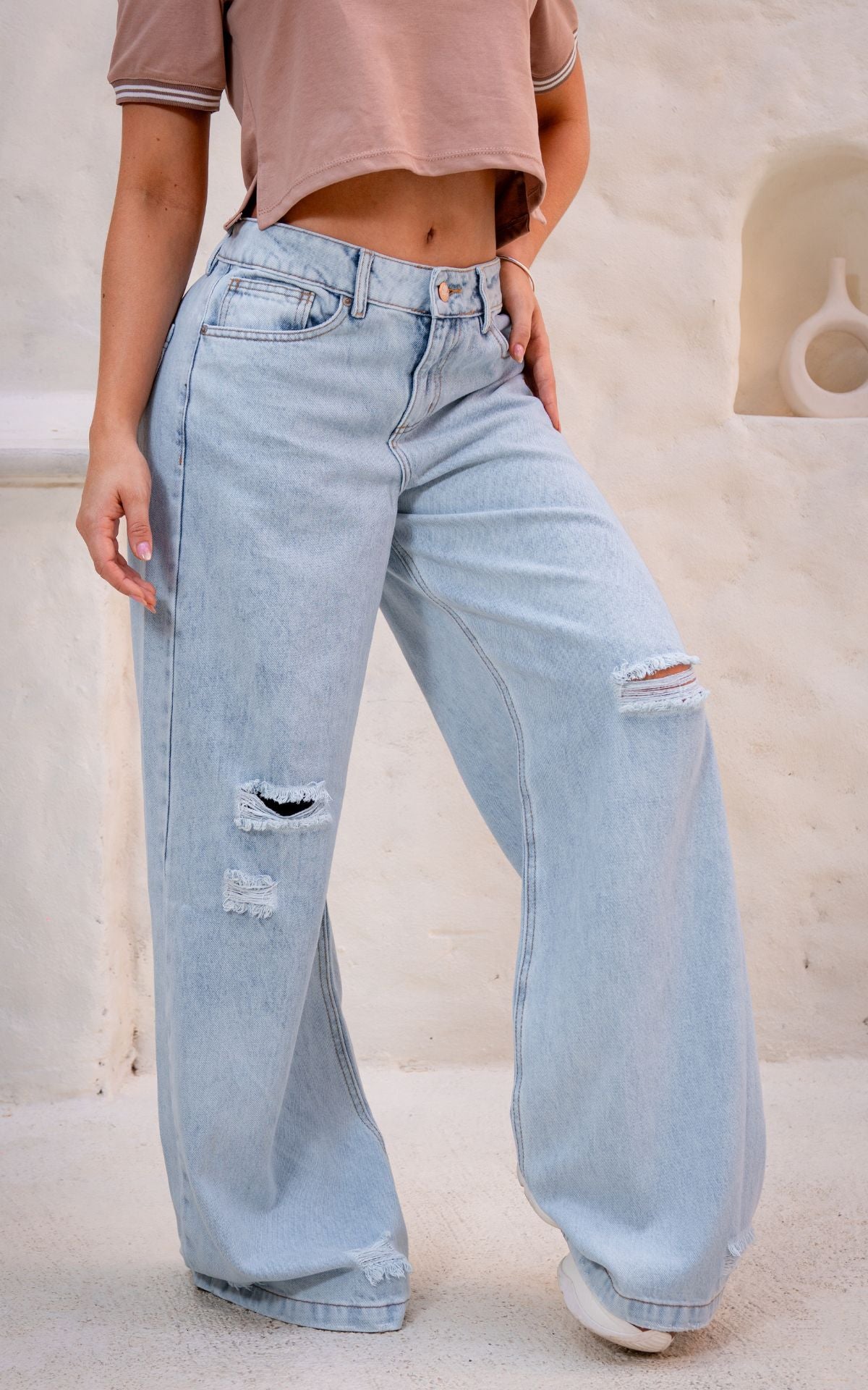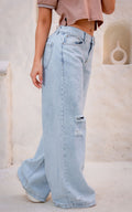 Su diseño wide leg crea una silueta moderna y favorecedora, mientras que los rotos estratégicos le aportan el toque urbano que amamos.