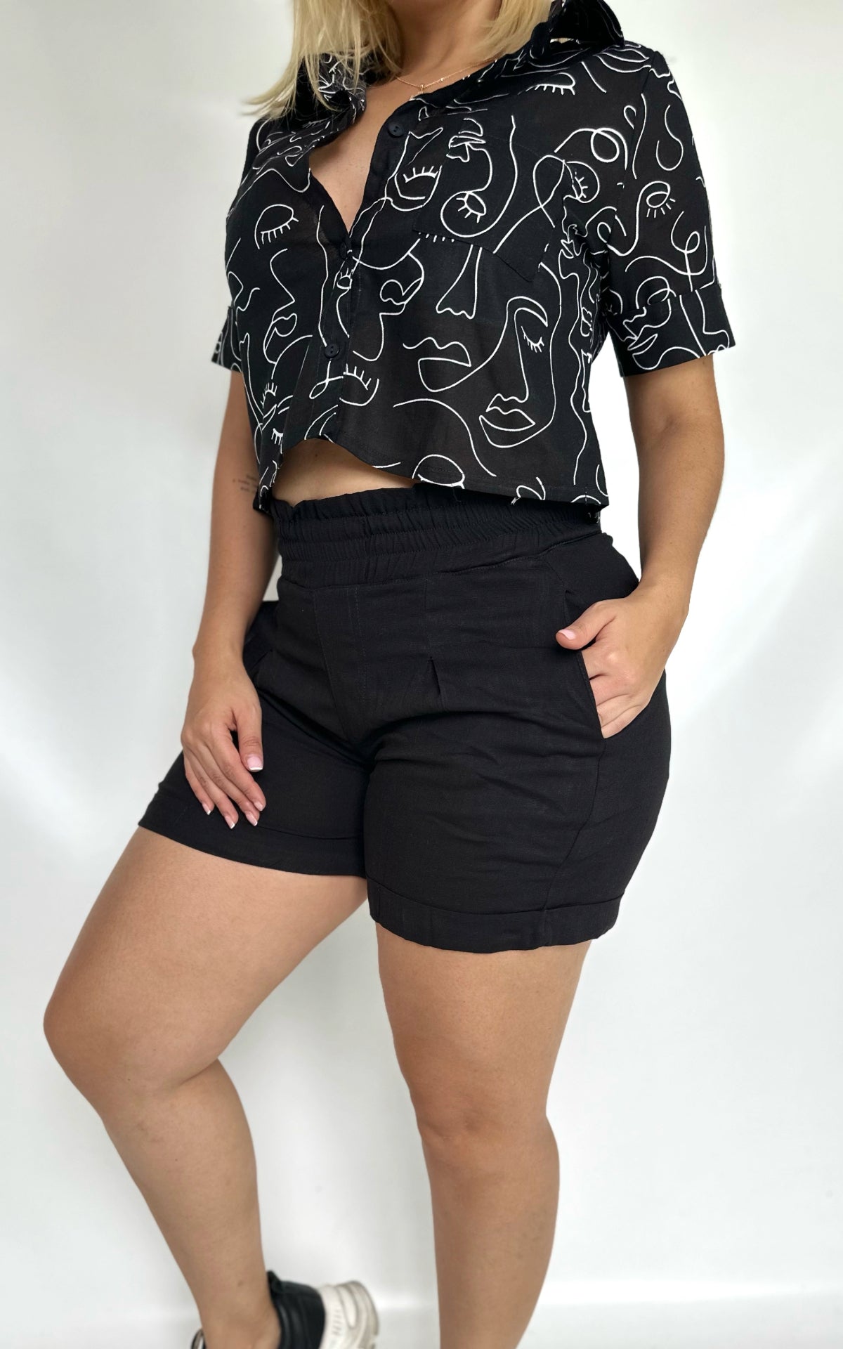 Set en lino, compuesto por una blusa tipo camisa y un short, diseñado para brindar frescura y elegancia en cada ocasión.